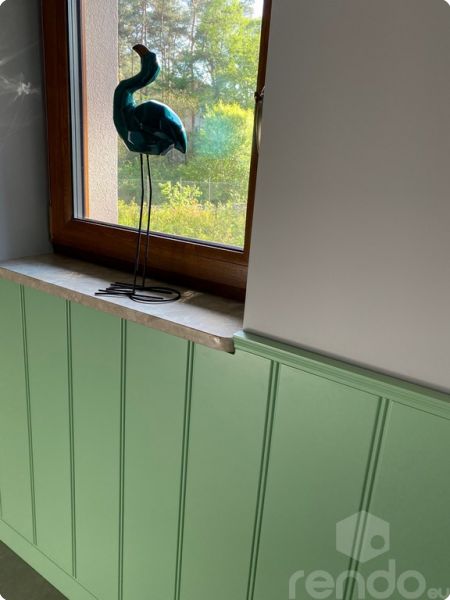 Ścianki z pionowych listew lamelowych wykonujemy z płyty laminowanej w kilku odcieniach.
